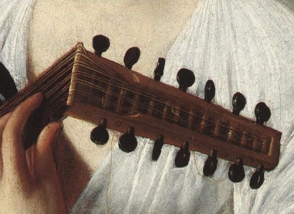 Over the past twenty years historians of early musical instruments generally, and lute makers in particular, have become heavily involved in the study of musical iconography as a necessary tool to make sense of the complex development of different instruments as they changed through the centuries in different regions of Europe . A certain expertise has now been built up as, increasingly, correlations are established between contemporary descriptions of instruments, the requirements of the available music, the history of varnish and string technologies, the treatises on playing techniques, the surviving instruments and their contemporary depictions. More and more the iconography has become the matrix into which other components must fit. It has forced us to realise how few surviving lutes are what they at first appear to be; how many have been altered, often several times, to meet the changing musical needs of the day. How many, indeed, in museums throughout the world, are simply impossible instruments confected by the large 19th century faking industry. In all this research art history has been invaluable and every good lute maker now spends almost as much time in galleries looking at paintings as in museums looking at the few surviving instruments. But of course occasionally this specialist interest enables us to repay the debt and see aspects of paintings which are not apparent to the untrained eye, even of an art historian.