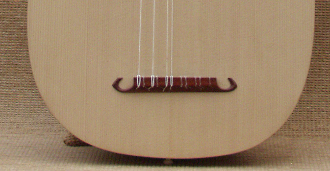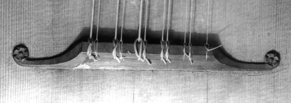 This is quite unlike normal Italian lute bridges of this period, if anything it looks like a back-to-front mandora bridge from the 18th. Century.