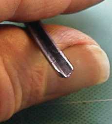 You won't need this until you come to cutting the rose. I recommend the American X-acto scalpels in the small size, they hold their blades closer to the end and are therefore more stable than the English Swann Morton ones. The Canadian Veritas type are as good as the X-acto but nicer looking and therefore more expensive. However either would be fine. These are for piercing the rose and I will be recommending a way of modifying the blades for this purpose. Also get the little fine sawblade to fit this handle, it will be very useful for cutting off the ends of the bars.