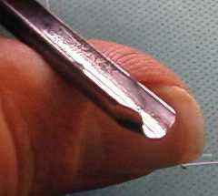 Get a piece about 0.5mm thick and borrow some tin-snips to cut it into a curved shape as shown in the picture. I will give detailed instructions on sharpening this, which, surprisingly, is an almost unknown art!